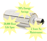 Payback from switching to LED can take as little as one and a half years and save up to 70% on energy and maintenance costs. While HPS lamps may need maintenance every 8,000 hours of usage, a LED post top lamp can last up to 5 years, maintenance free.